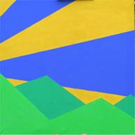 fields and areas of crops, trees, mountain scrub, heather and so on. In this painting, the colours are used to both
