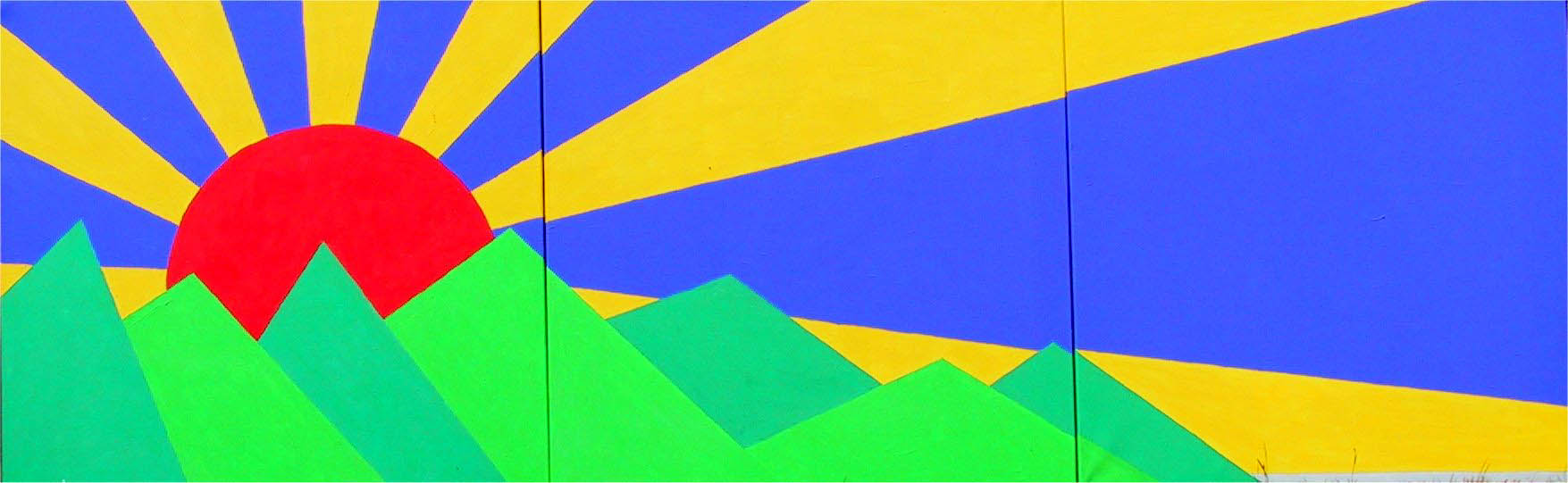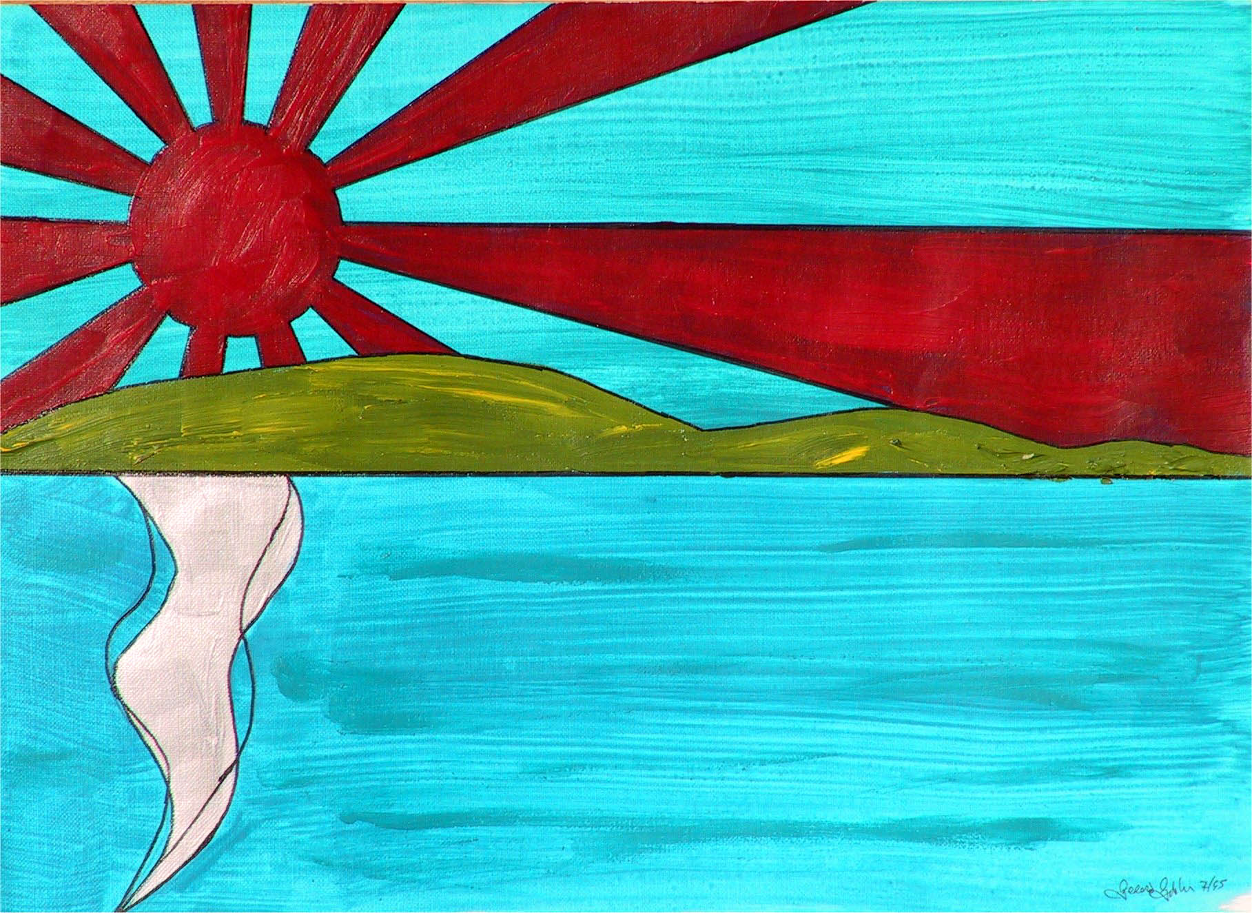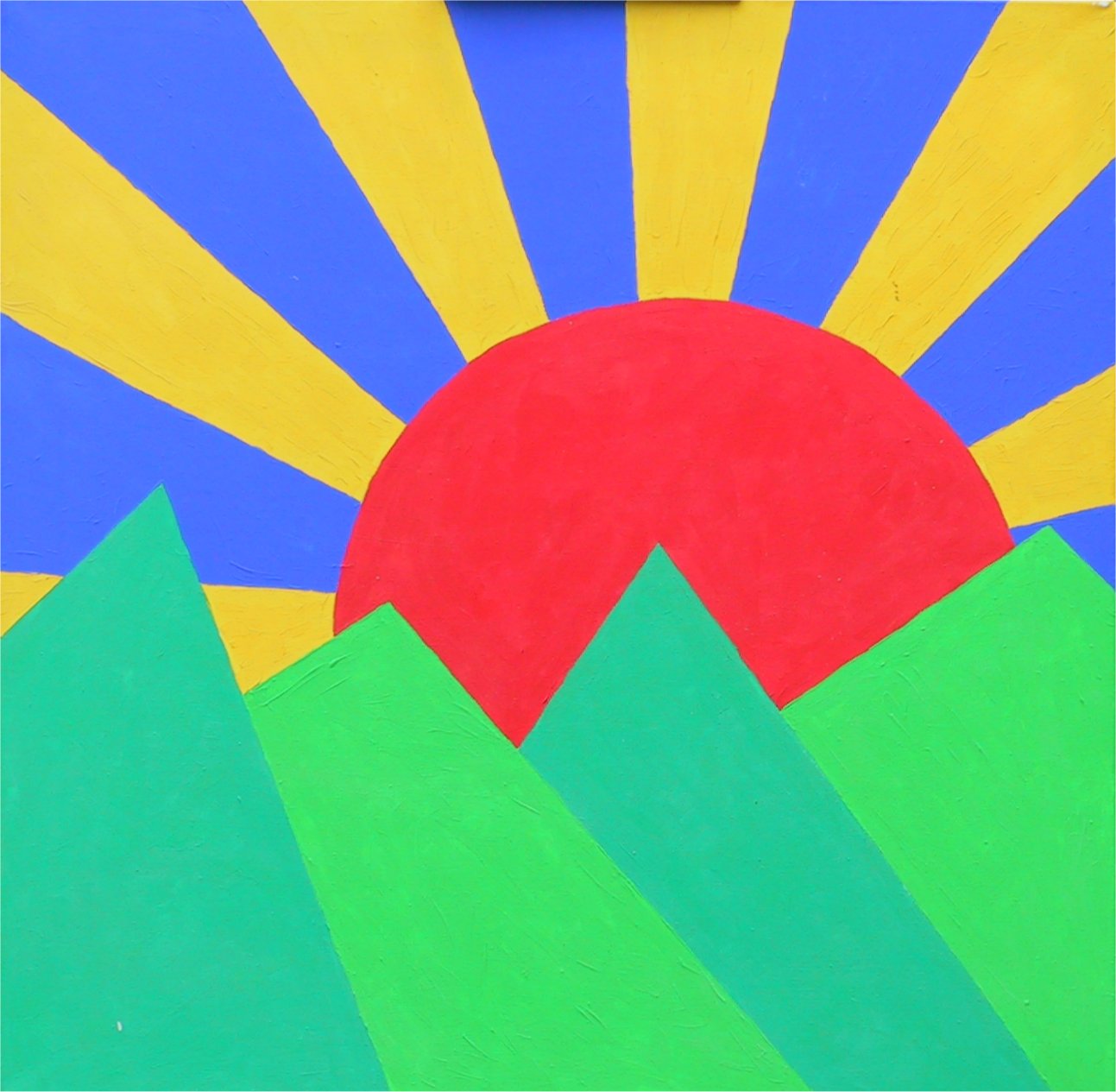 The stylised sun with the blue rays is a main feature of the painting. The blue rays represent the power the sun