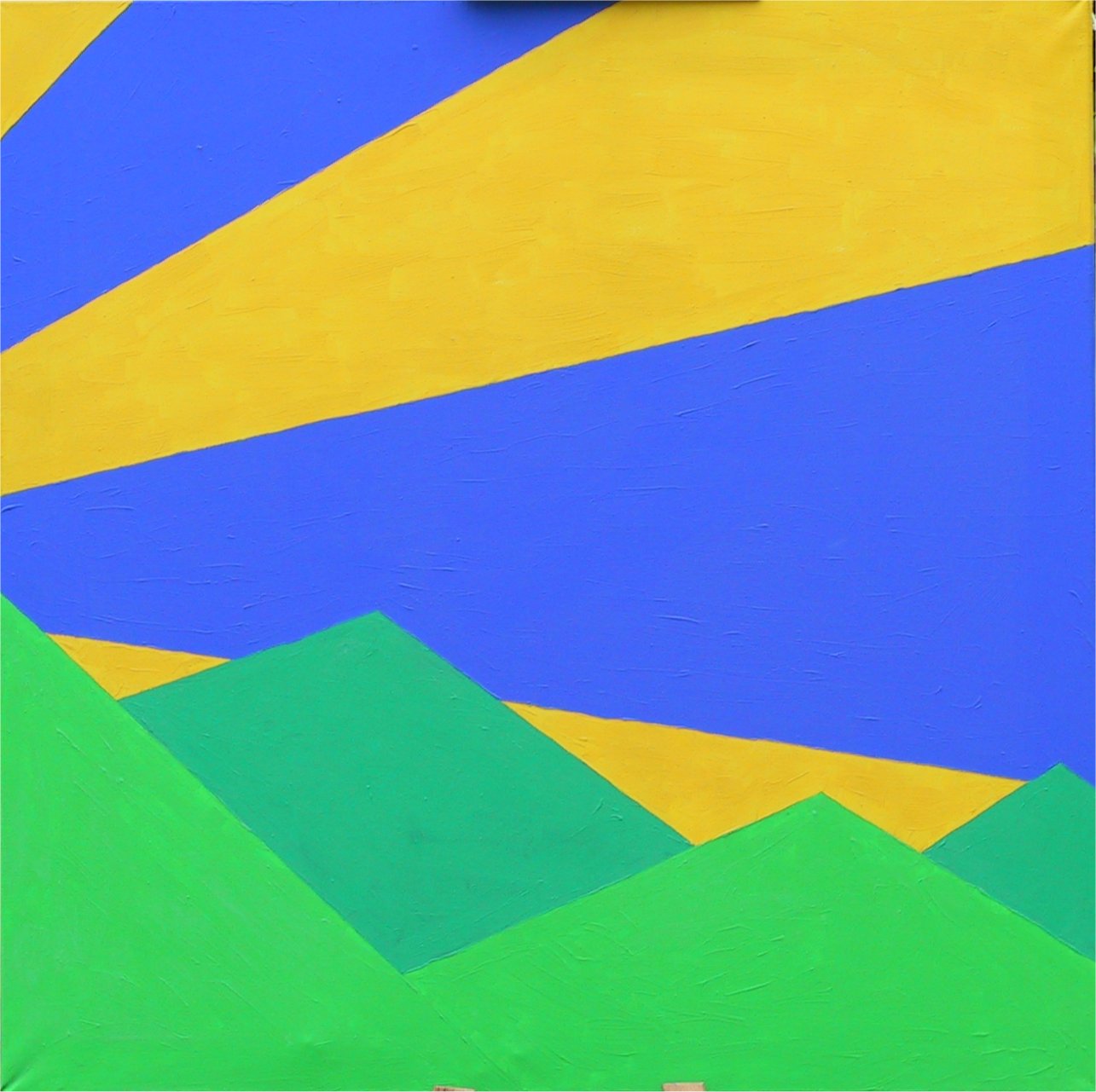 fields and areas of crops, trees, mountain scrub, heather and so on. In this painting, the colours are used to both