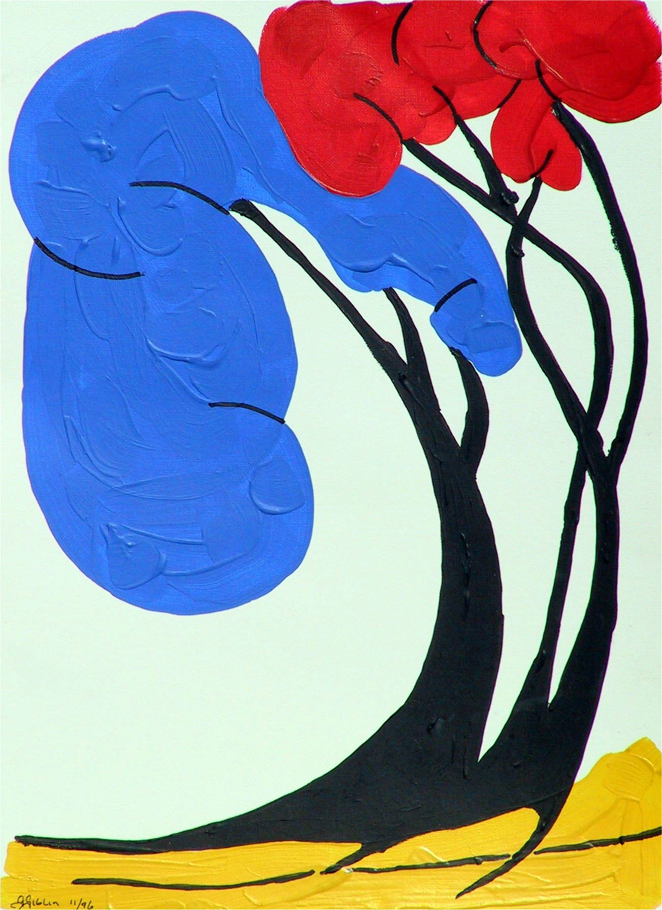 leaves. Using black for the foliage and primary colours for the trunks is a further abstraction