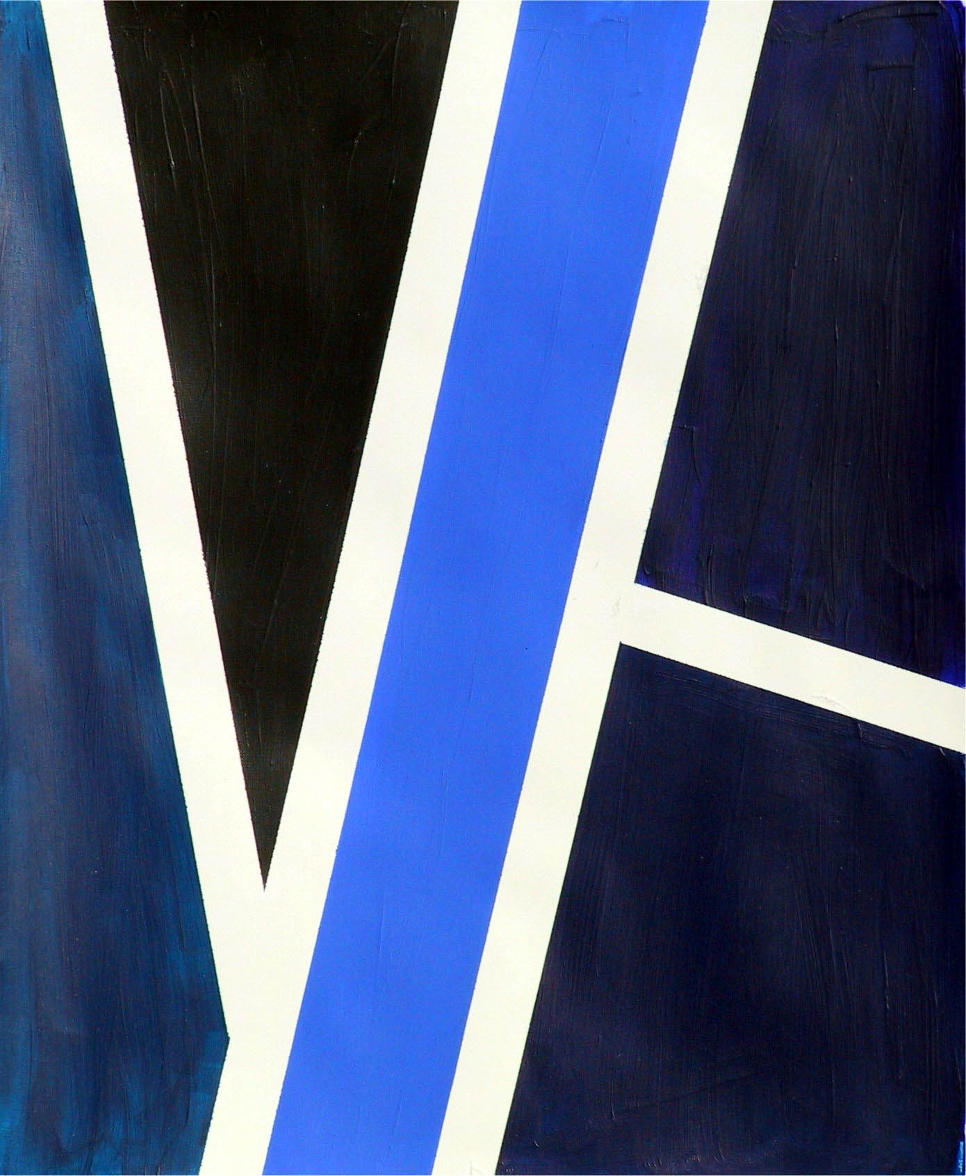 simple change in colours. The black road forks just outside a house that contains an organic shape. The sea can