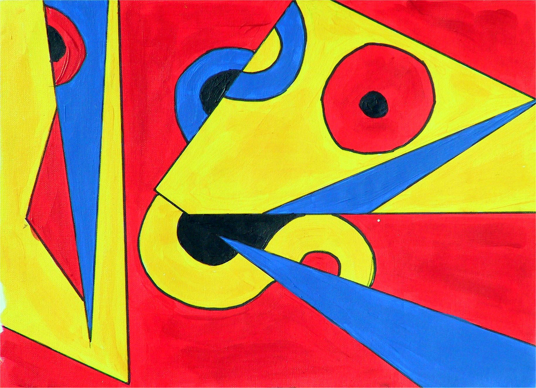 Skull by Michael Moorcock. The colours are primary only, abstracting the reality to give a visual impression of