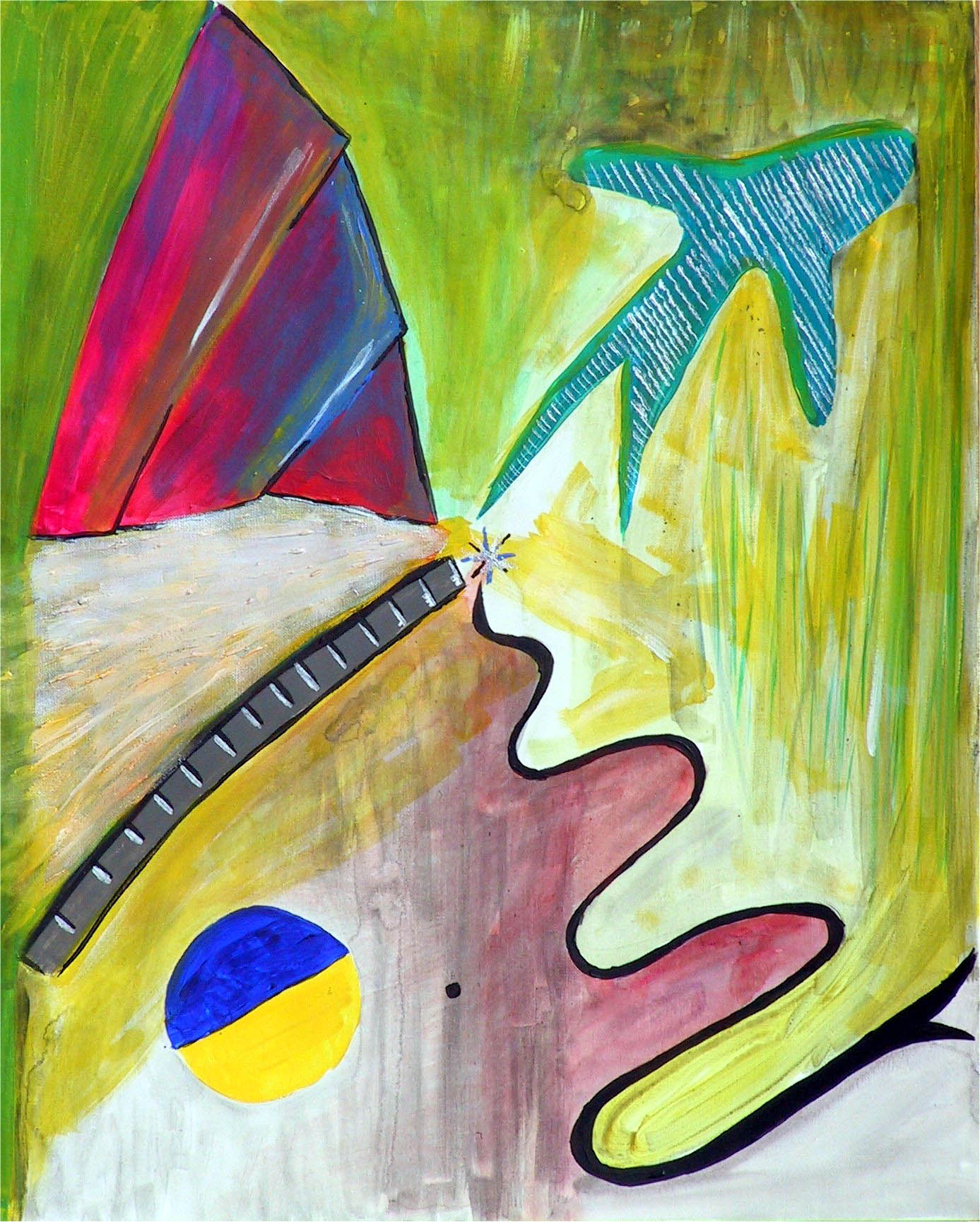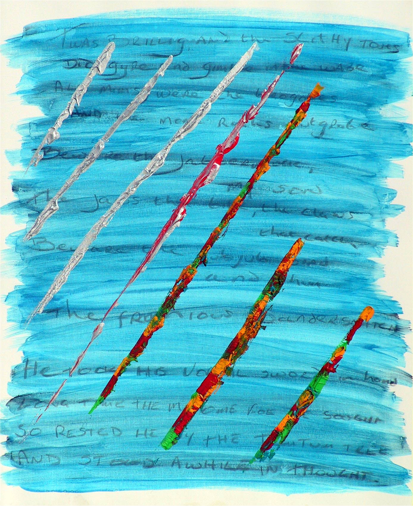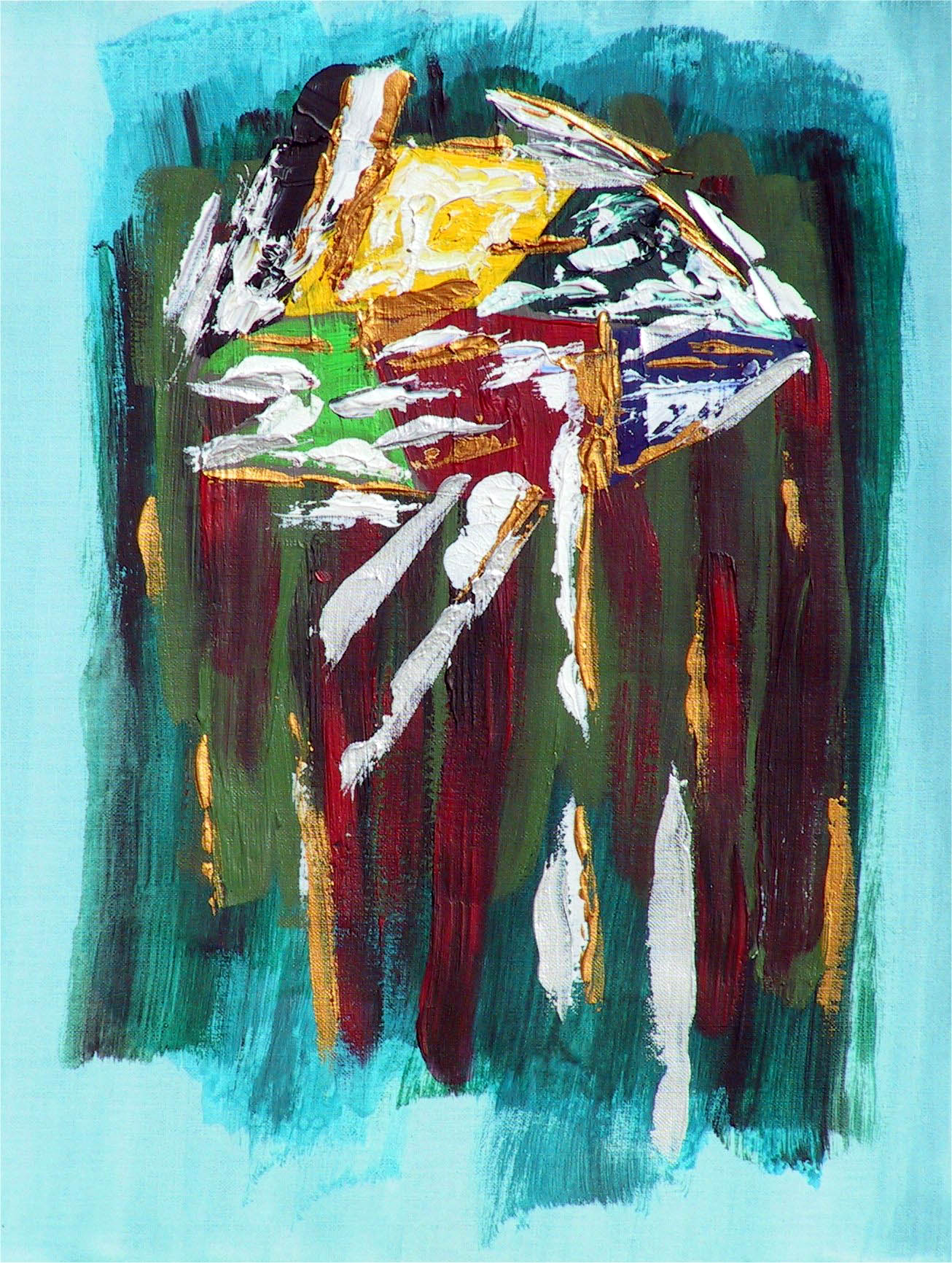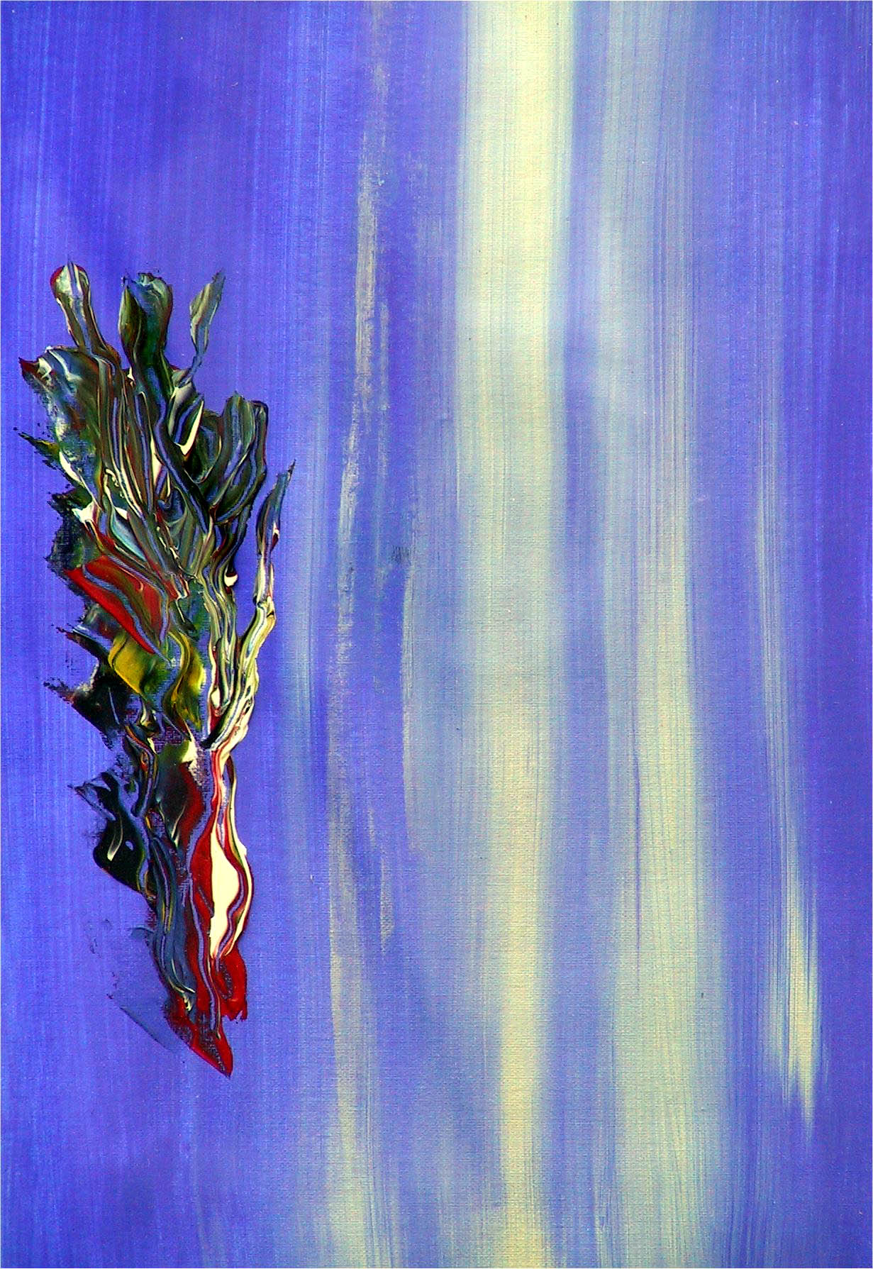 This started out more like an exercise. The blue background with the silver streaaks were more like a landscape sky.
