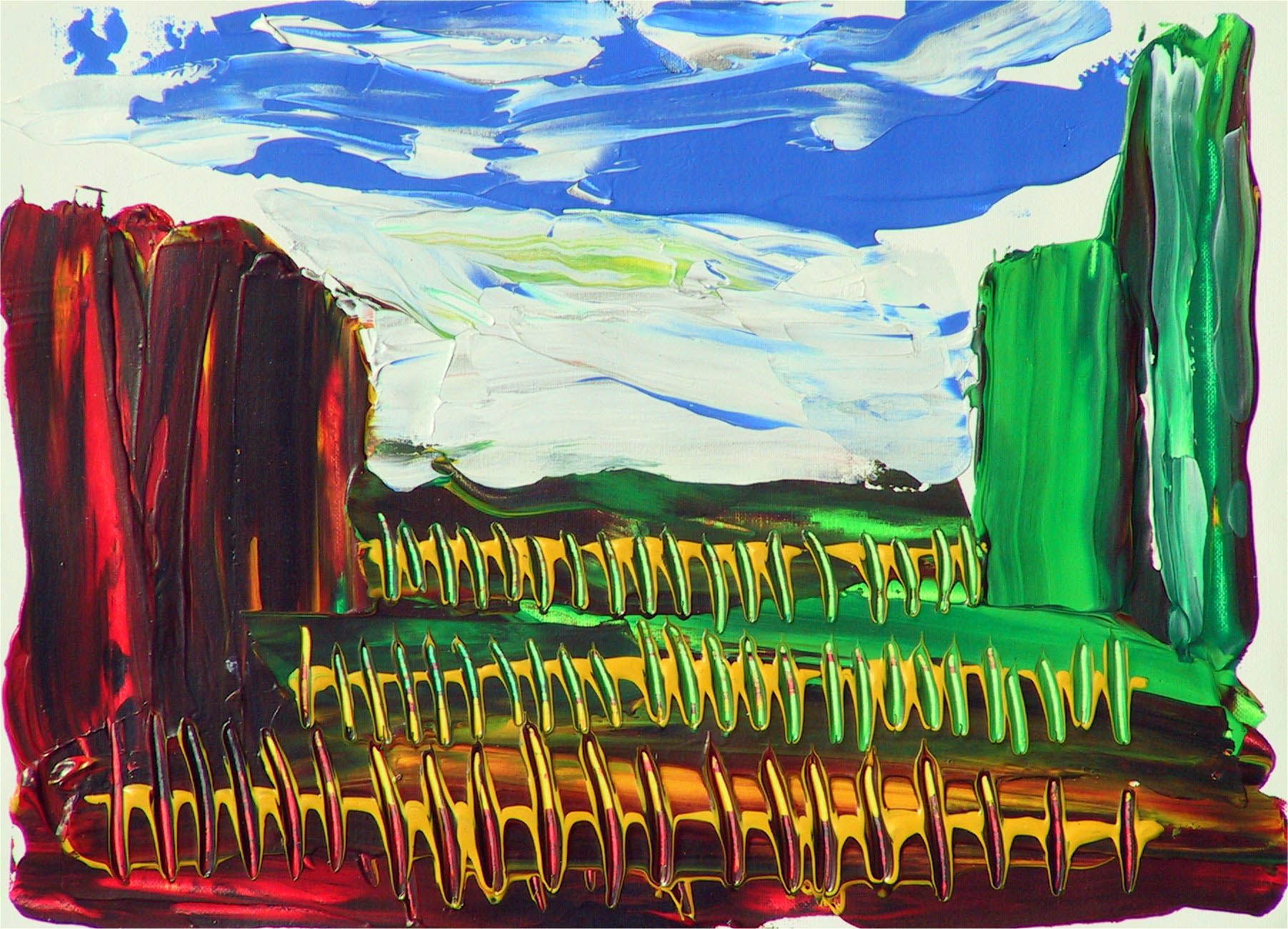 The Field is a symbolic abstraction of an agrarian scenario. I got the inspiration from a holiday near Killarney,